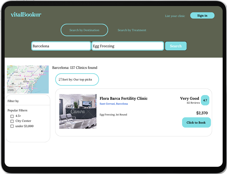 Browse accredited clinics specializing in egg freezing and IVF. Save favorites, compare costs, manage communications and payments all in one place